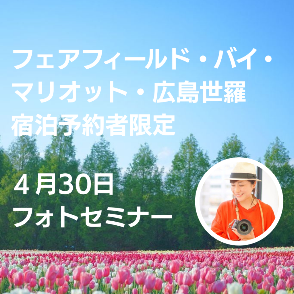 こちらは、4月29日(水)にフェアフィールド・バイ・マリオット・広島世羅に宿泊されるかたを対象に、4月30日(木)のフォトセミナーにご参加いただけるイベントです。